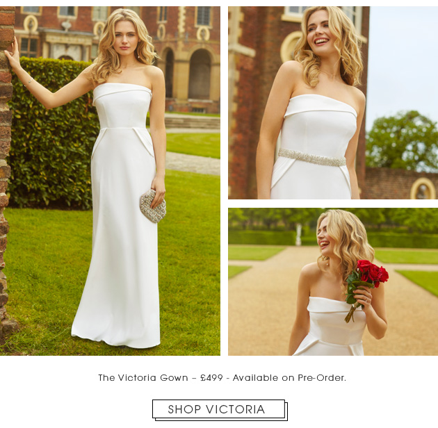 The Victoria gown is a truly beautifully elegant and sleek strapless design, complete with satin asymmetrical detailing. Team the Victoria Gown with a smooth satin sash for a classic look, or add a Crystal Beaded Silk Sash for an extra bit of drama and opulence.
