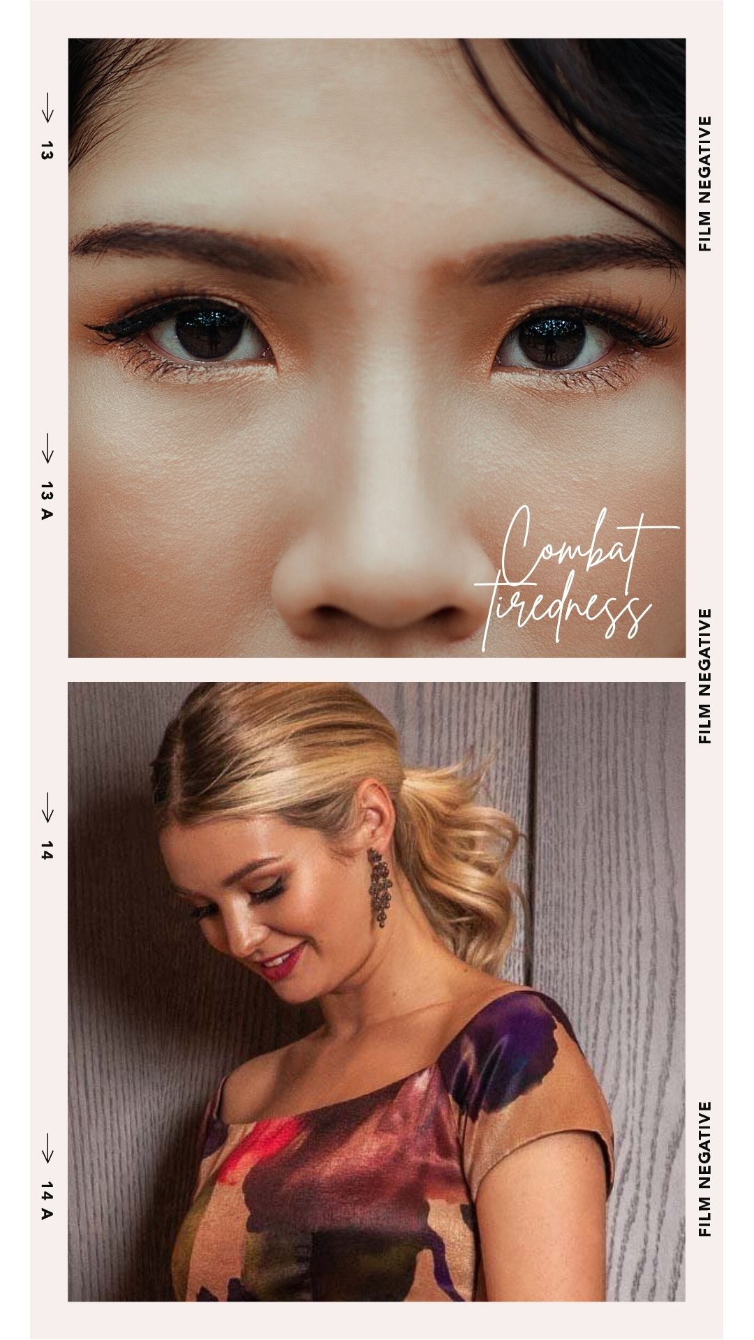 Utilisez un highlighter juste sous la ligne du sourcil, sur l'arcade sourcilière et aux coins de l'œil pour l'agrandir, puis déposez une touche de brillance dans le coin interne pour encore accentuer le regard.